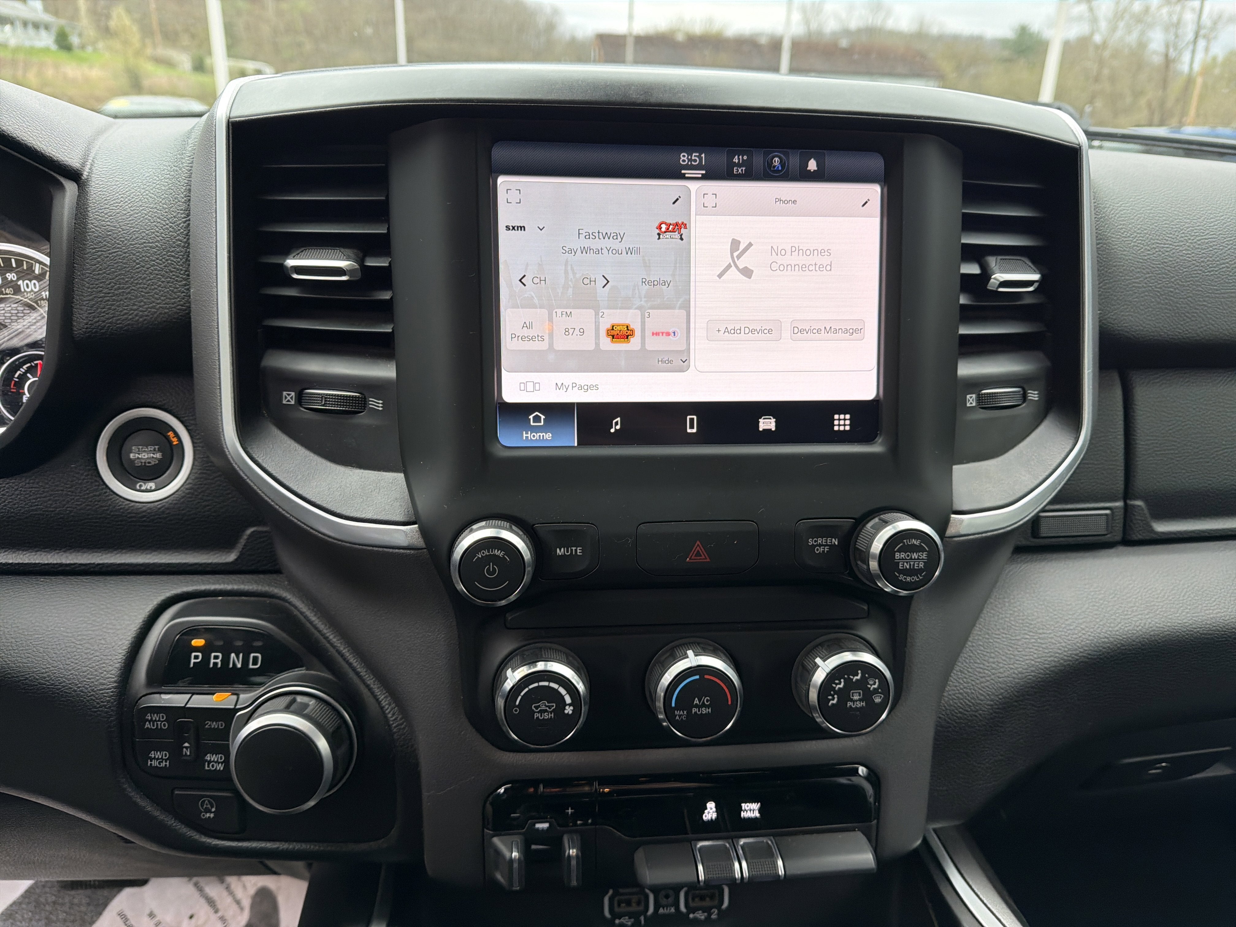 - BIG HORN LEVEL 1 EQUIPMENT GROUP -inc: Google Android Auto SiriusXM Radio Service Bluetooth® Handsfree Phone & Audio USB Host Flip Rear Window Defroster For Details Visit DriveUconnect.com Integrated Center Stack Radio Rear View Auto Dim Mirror Power Adjustable Pedals Rear Power Sliding Window Rear Dome w/On/Off Switch Lamp Connectivity - US/Canada Glove Box Lamp 4G LTE Wi-Fi Hot Spot Exterior Mirrors w/Heating Element Power 8-Way Driver Seat Auto Dim Exterior Driver Mirror Radio: Uconnect 5 W w/8.4 Display 8.4 Touchscreen Display Class IV Receiver Hitch Black Premium Power Mirrors Apple CarPlay Big Horn IP Badge SiriusXM Satellite Radio Exterior Mirrors w/Supplemental Signals Exterior Mirrors Courtesy Lamps Universal Garage Door Opener Cluster 3.5 TFT Color Display Power-Folding Mirrors 2nd Row In Floor Storage Bins Sun Visors w/Illuminated Vanity Mirrors Power 2-Way Driver Lumbar Adjust